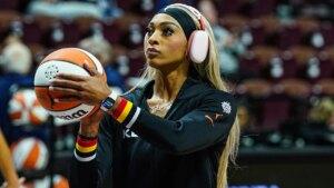 WNBA star Dijonai Carrington Flaunts explicit message of pre-game outfit aimed at President Trump