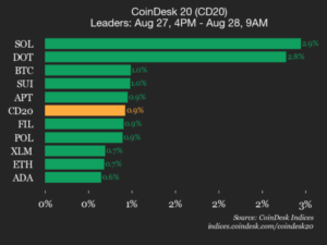 Coindesk -Index presents its daily market update and highlights the results of managers and laggards in the Coindesk 20 index. Coindesk 20 trades at the moment of 4184.47, an increase of 0.9% (+38.32) Since at. 16 a Wednesday. Fifteen of the 20 assets act higher. Leaders: Sun. (+2.9%) and dot (+2.8%). Laggards: Link (-1.3%) and […]