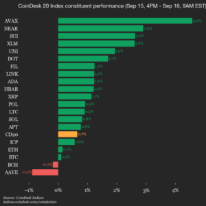 Coindesk -Index presents its daily market update and highlights the results of managers and laggards in the Coindesk 20 index. Coindesk 20 is currently trading at 4267.12, an increase of 0.7% (+27.81) since noon. 16 A Monday. Eighteen of 20 assets act higher. Leaders: Avax (+4.6%) and near (+2.9%). Laggards: Aave (-0.9%) and BCH (-0.2%). […]