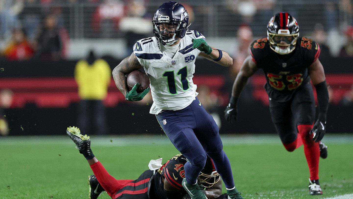 Jaxon Smith-Njigba of the Seattle Seahawks in action during the 2025 NFL game between the Seattle Seahawks and the San Francisco 49ers at Levi’s Stadium on January 3, 2026 in Santa Clara, California. (Ezra Shaw/Getty Images)