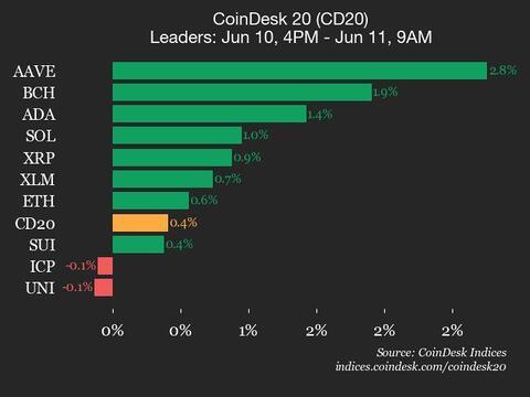 Leaders: Aave (+2.8%) and BCH (+1.9%).