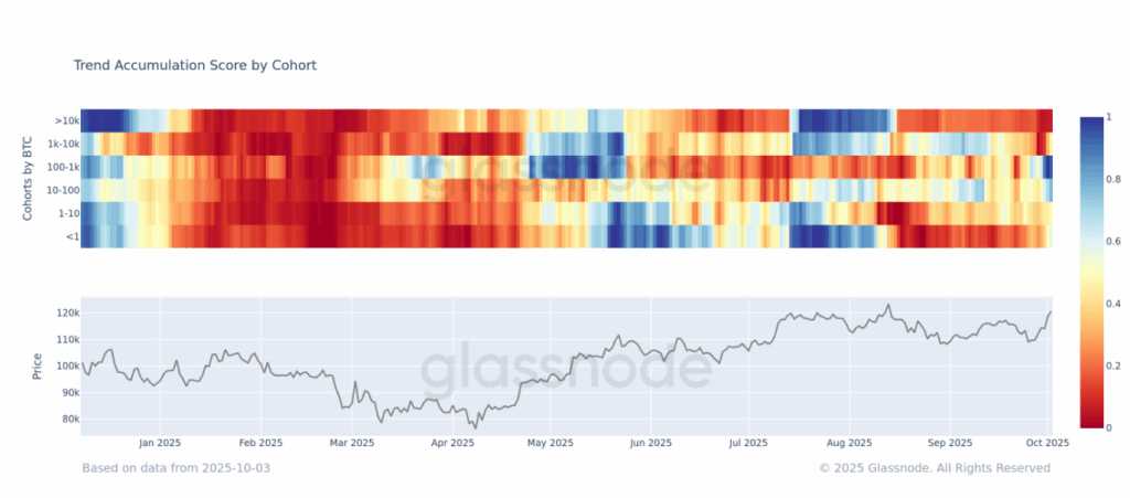 Bitcoin Has risen 10% this week as several groups of wallet holders are switching from distribution to accumulation for the first time since August. The biggest cryptocurrency rose over $ 121,000 on Thursday, the highest since it hit a record on August 14, Coindesk data shows.
