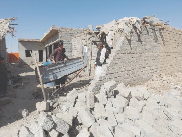 People inspect the damage after a drone hit a residential house in the Sarah Gharghai area of ​​Quetta. Photo: Reuters