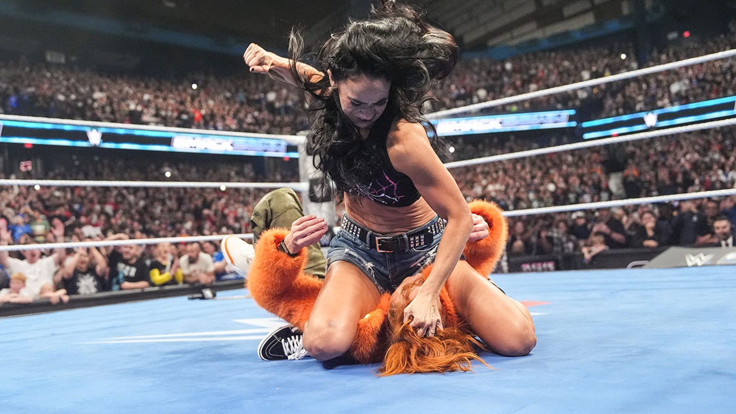 AJ Lee in action against Becky Lynch during Smackdown in Allstate Arena on September 5, 2025 in Rosemont, Illinois. (Rich Freeda/WWE via Getty Images)