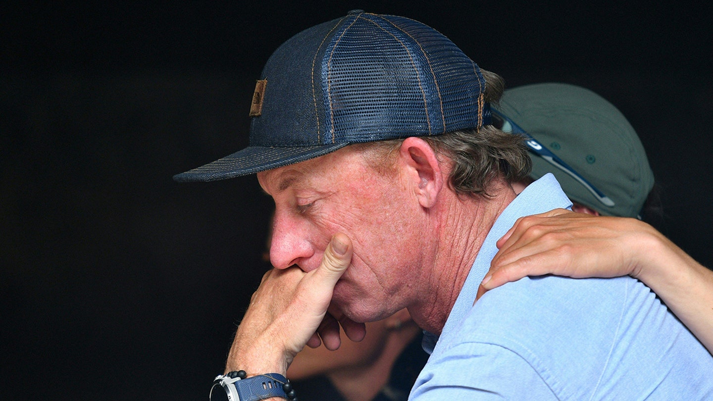 Jim Morrison, partner of American ski mountaineer Hilaree Nelson, reacts during the funeral pyre ahead of her cremation in Kathmandu on October 2, 2022. A search team retrieved the body of American ski mountaineer Nelson from the Himalayas on September 28, two days after she disappeared on the slopes of Nepal’s Mount Manaslu. (PRAKASH MATHEMA/AFP via Getty Images)