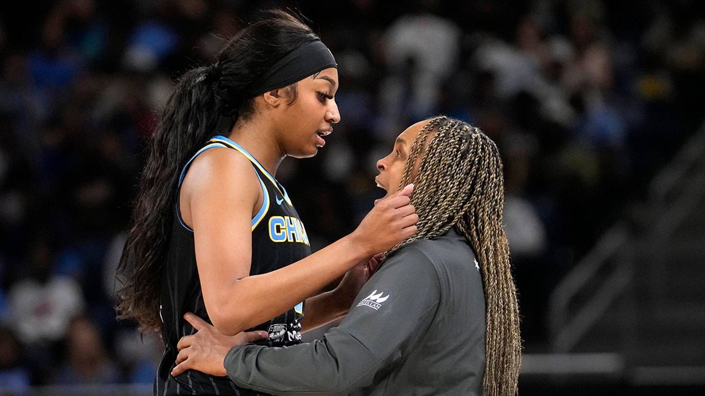 Chicago Sky -Head coach Teresa WeatherSpoon talks to Angel Reese in the second half of a WNBA basketball match against New York Liberty on Tuesday, June 4, 2024 in Chicago. (AP Photo/Charles Rex Arbogast)