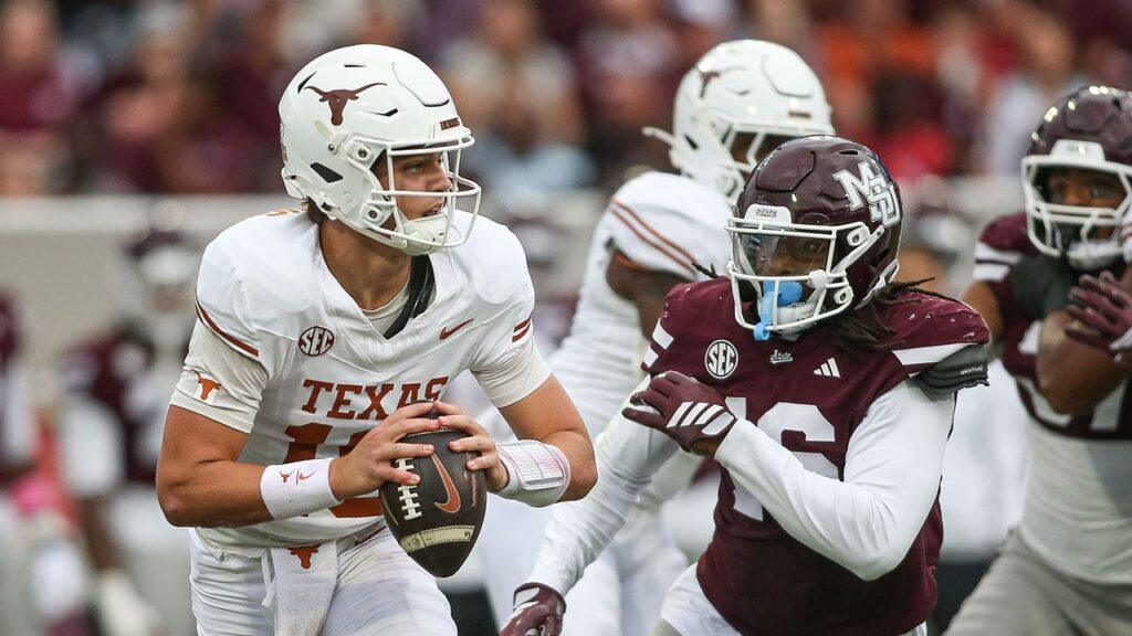 Texas defeated Mississippi State, 45-22, in double overtime last weekend. The Longhorns scored 24 points in the fourth quarter to force the extra session.