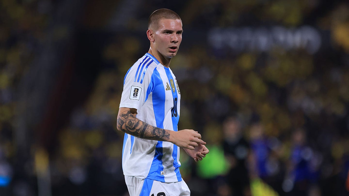 Franco Mastantuono of Argentina responds during the South American FIFA World Cup 2026 qualifying match between Ecuador and Argentina at Estadio Monumental Isidro Romero Carbo on September 9, 2025 in Guayaquil, Ecuador. (Franklin Jacome/Getty Images)
