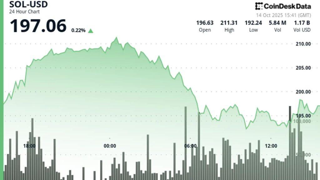 From October 14, 2025, 15:31 UTC, Sol was $ 197.06, an increase of 0.22% over 24 hours.