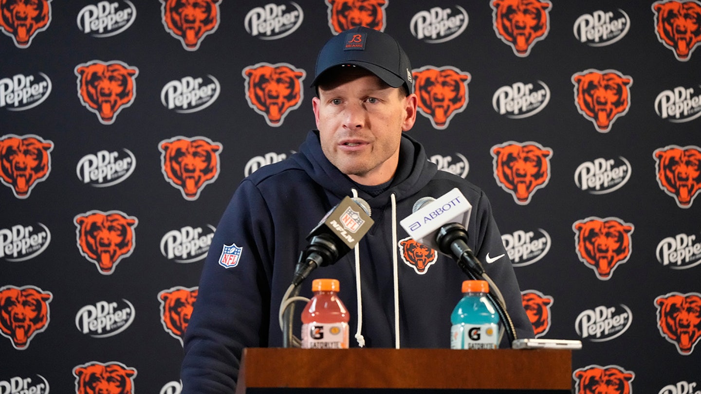 Chicago Bears head coach Ben Johnson speaks after an NFL wild-card playoff football game against the Green Bay Packers Saturday, Jan. 10, 2026, in Chicago. (AP Photo/Nam Huh)