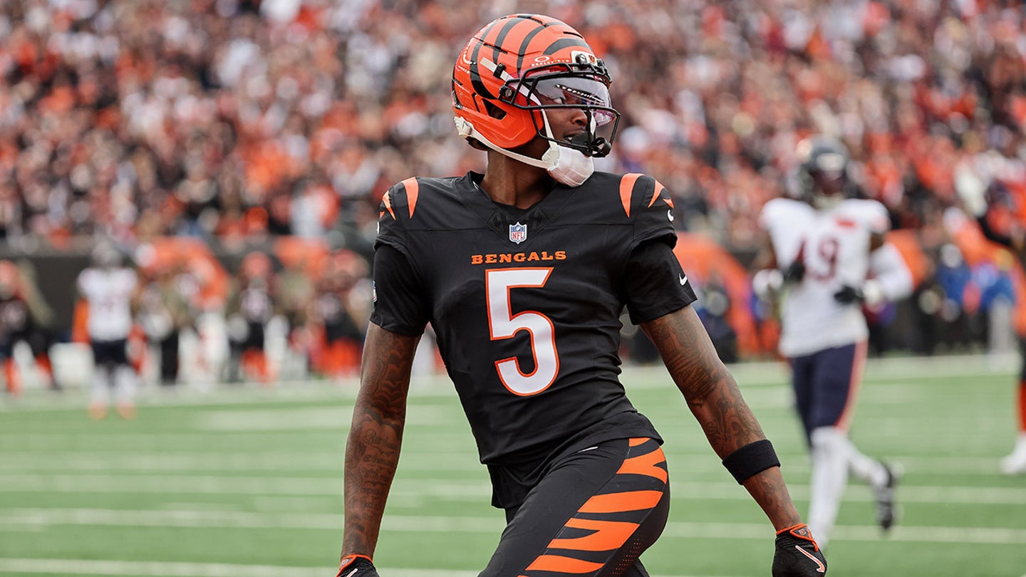 Bengals quarterback Joe Flacco found Higgins jockeying for position against Bears defensive back Nashon Wright. When the ball was thrown near the sideline, Higgins jumped up and over Wright to make the catch and score the touchdown before halftime of their Week 9 game.