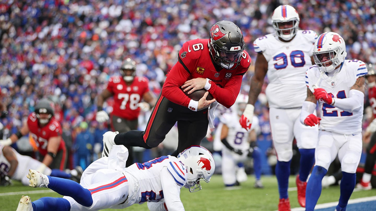 Baker Mayfield (6) of the Tampa Bay Buccaneers scores a touchdown during the second quarter against the Buffalo Bills at Highmark Stadium on November 16, 2025 in Orchard Park, New York. (Bryan M. Bennett/Getty Images)