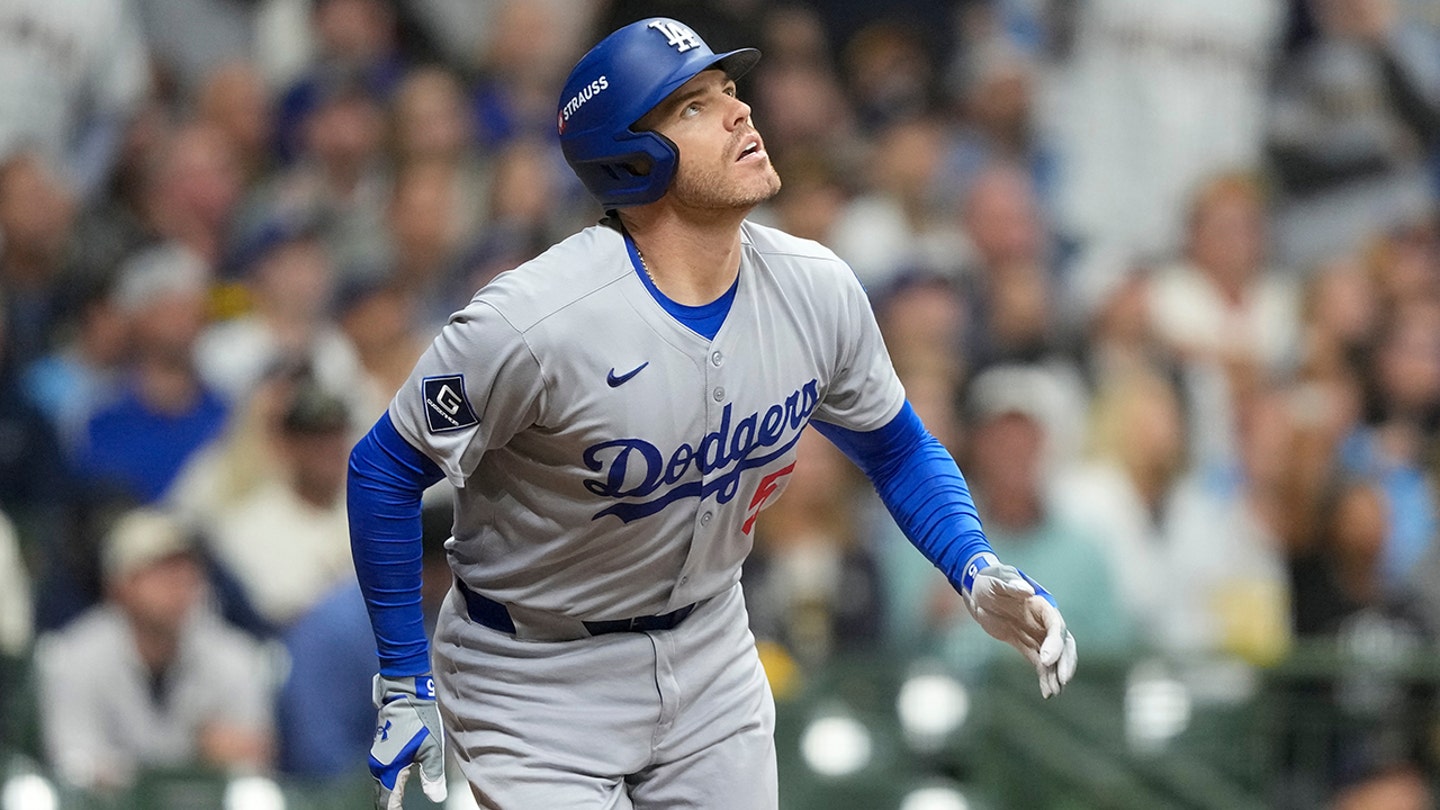 Los Angeles Dodgers’ Freddie Freeman looks at his homemade against Milwaukee Brewers during the sixth round in Game 1 in Baseball’s National League Championship series, Monday 13 October 2025, in Milwaukee. (AP Photo/Brynn Anderson)