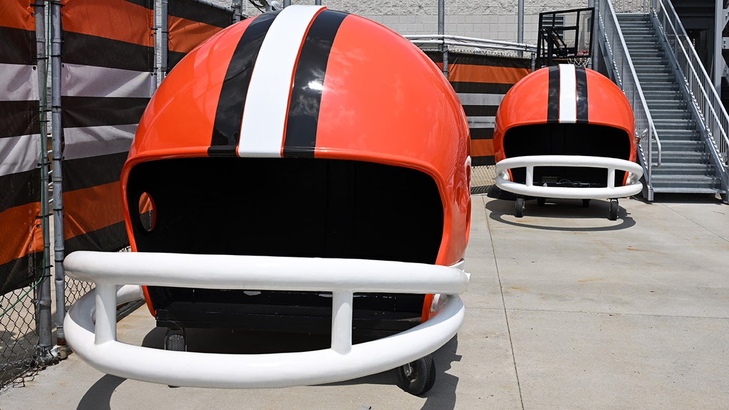 Cleveland will have a new helmet three times this regular season with orange letters brown uniforms. To show the helmet, Browns composed a large float by the lake Erie, which contained an inflatable helmet plot of those that the players would wear.