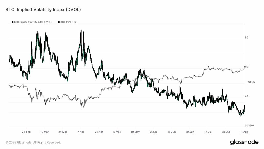 Over the weekend, Bitcoin jumped from $ 116,000 to $ 122,000 and hinted at what might happen when volatility begins to expand. August is traditionally a period of low quantities and muted market activity, but Rising IV suggests that dealers may be placing for larger movements in the future.