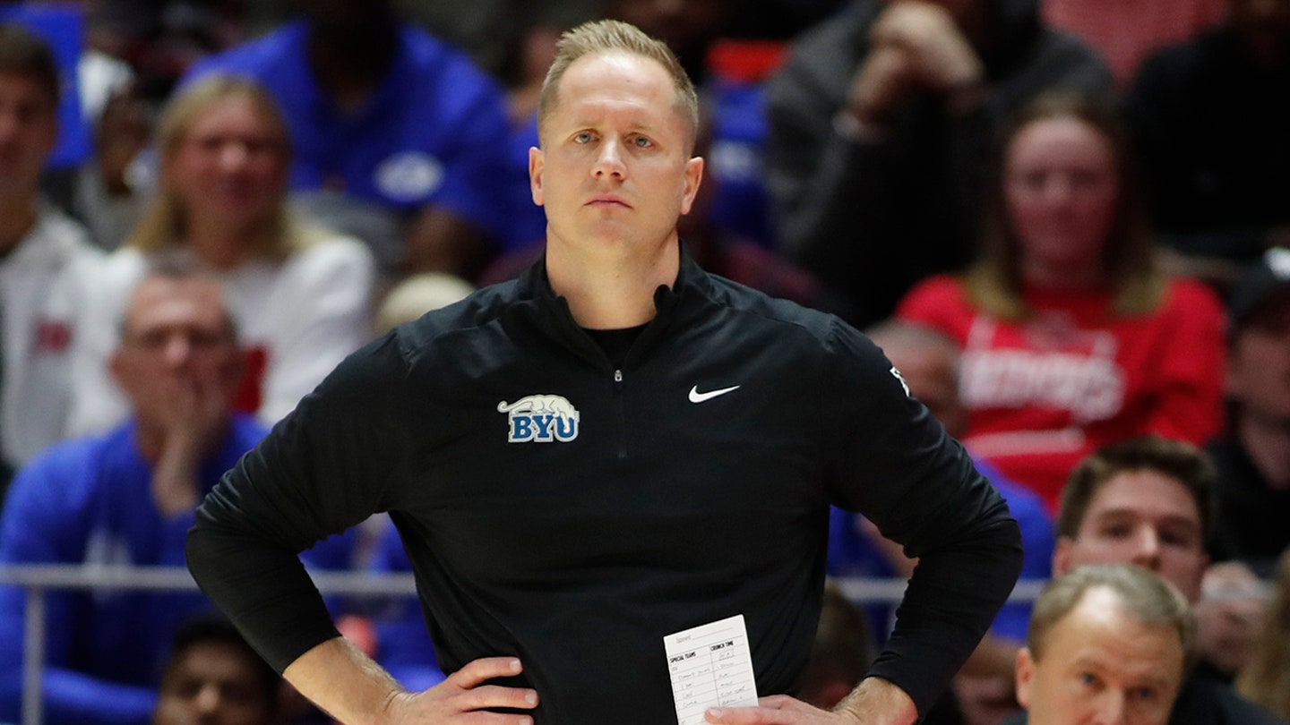 BYU Cougars basketball coach Kevin Young watches a play during the first half of their game against the Utah Utes at the Jon M Huntsman Center on January 10, 2026 in Salt Lake City, Utah. (Chris Gardner/Getty Images)