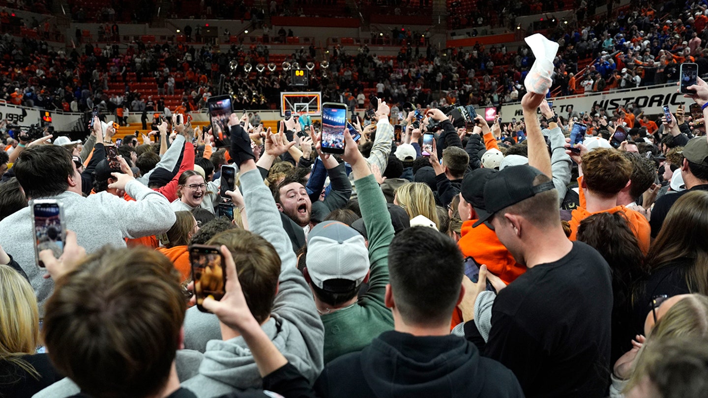 As the final seconds ticked off the clock, Oklahoma State fans rushed the court to celebrate the upset of No. 16 BYU.