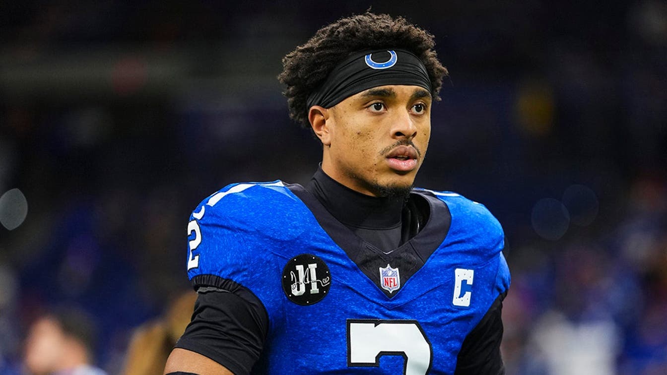 Josh Downs of the Indianapolis Colts warms up before an NFL game against the San Francisco 49ers at Lucas Oil Stadium in Indianapolis on Dec. 22, 2025. (Cooper Neill/Getty Images)