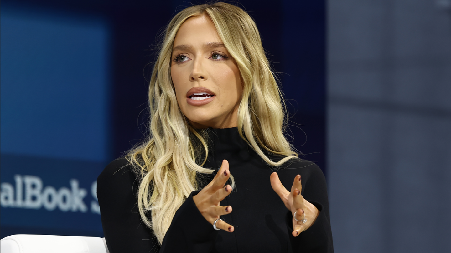 Alex Cooper, hosted “Call Her Daddy” and founder of the eligible network, speaks during the New York Times annual Dealbook top meeting at Jazz at Lincoln Center on December 4, 2024 in New York City. (Michael M. Santiago/Getty Images)