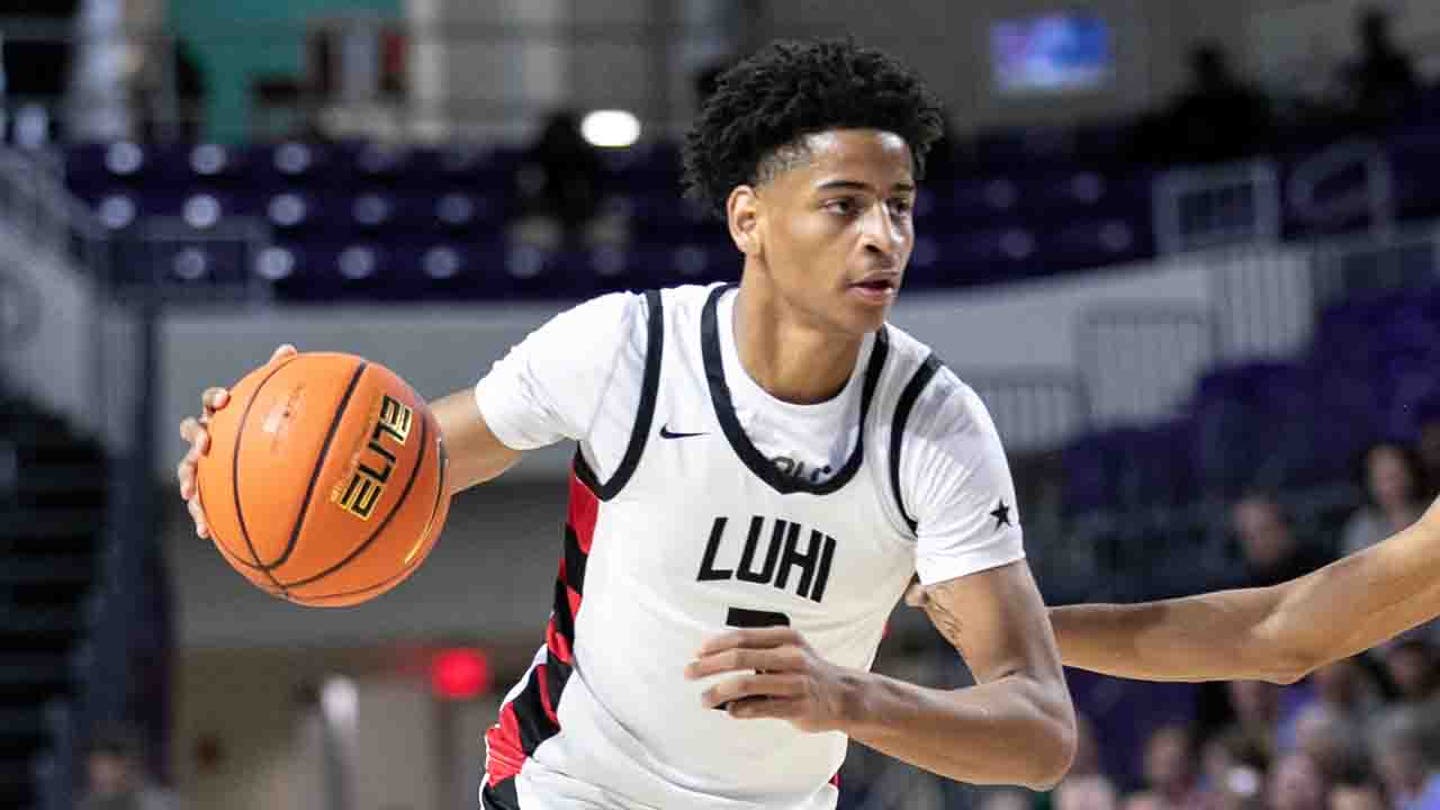 Kiyan Anthony from Long Island Lutheran drives towards the curve to Westminster Academy in the City of Palms Classic at the Suncoast Credit Union Arena in Fort Myers on Tuesday, December 19, 2023. (Amanda Inscore/The News Press)