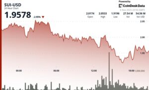 SUI, the native token of Layer-1 blockchain Sui, fell 2.5% to $1.98 on Thursday, falling below the $2.00 level that had served as key psychological and technical support. The move came amid heightened volatility and a marked increase in trading volume, pointing to growing institutional activity near critical price levels. The token’s price dropped from