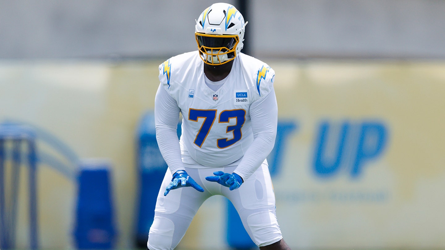 Los Angeles Chargers Guardian Mekhi Becton (73) under organized team activities at Bolt in El Segundo, California on May 27, 2025. (Kirby Lee/Imag- Pictures)