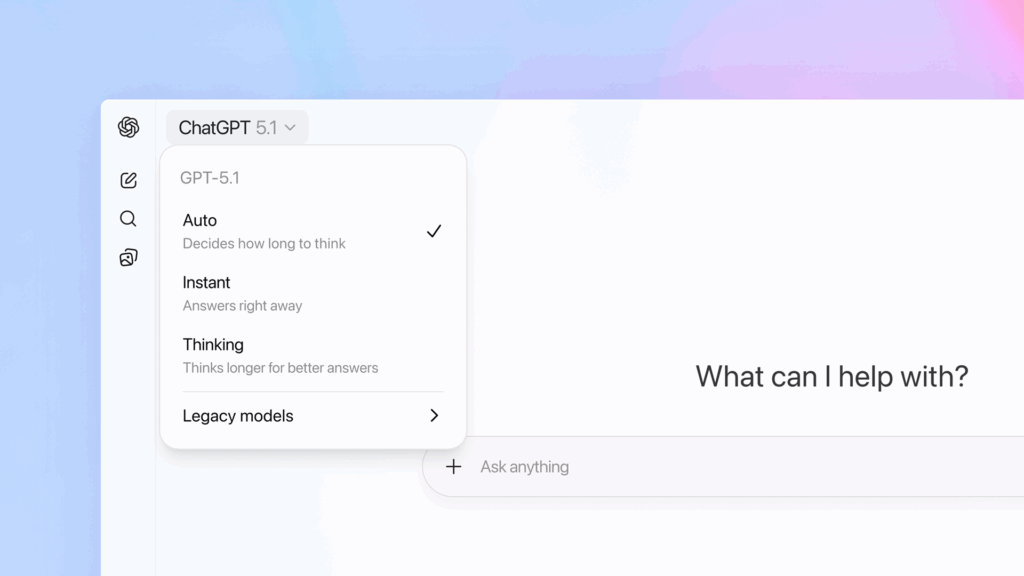 All of these options change voice and delivery, and do so instantly across all conversations. Previously, users had to start a new chat for tone changes to take effect. With GPT-5.1, you can update tone, emoji frequency or wording in the middle of an ongoing exchange and the model will instantly adjust.