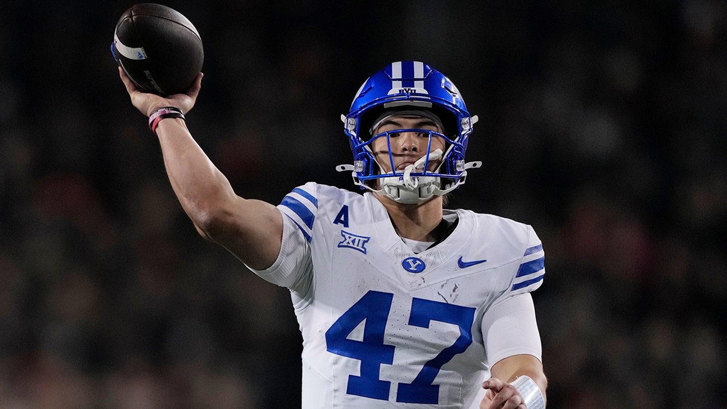 BYU quarterback Bear Bachmeier (47) throws a pass during the second half of an NCAA college football game against Cincinnati, Saturday, Nov. 22, 2025, in Cincinnati. (AP Photo/Carolyn Kaster)