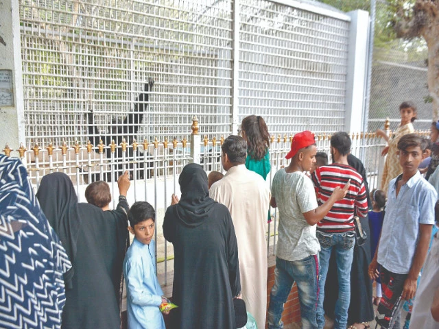 Behind the iron bars, a pair of old eyes watch the crowds come and go. His hands, meant for forests and sun-warmed branches, rest on cold steel. In the silence between camera clicks and children’s cheers, his heart remembers the freedom of the sky, the rustle of the leaves, the language of the wind. Photo: Jalal Qureshi/express