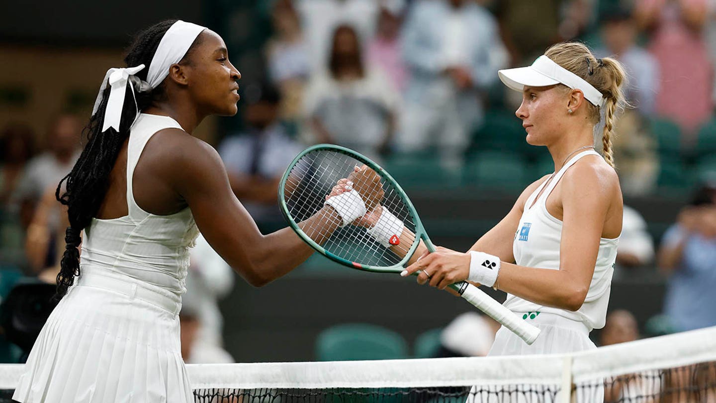 Coco Gauff (USA) shakes his hands with Dayana Yastremska (UKR) (R) online after their match on Day 2 of the championship, Wimbledon 2025 at All England Lawn Tennis and Croquet Club on July 1, 2025 in Wimbledon Britain. (GEOFF BURKE/IMAGN -PICTURES)