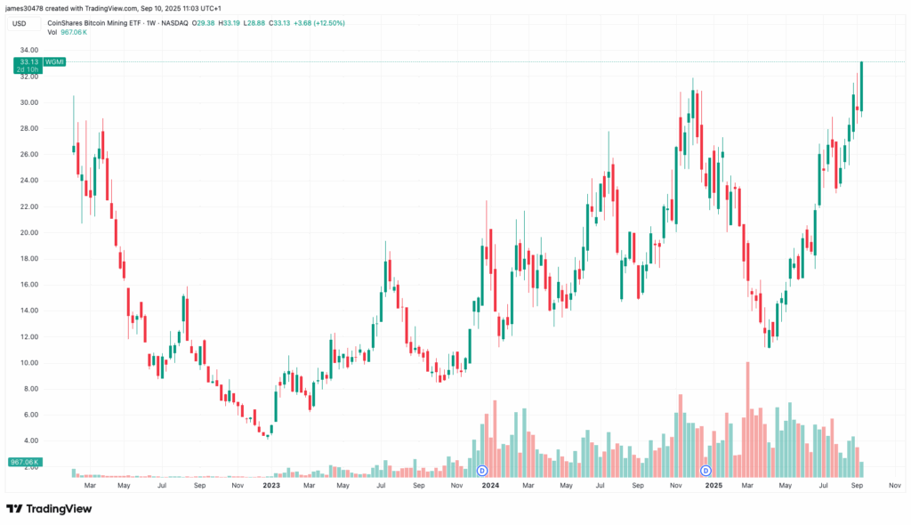 COINSHARES BITCOIN MINING ETF (WGMI) Rose 12% to Record $ 33.13 on Tuesday as Nebius Group’s $ 17.4 billion agreement to deliver GPUs to Microsoft Increased Crypto Mining and AI-related shares everywhere