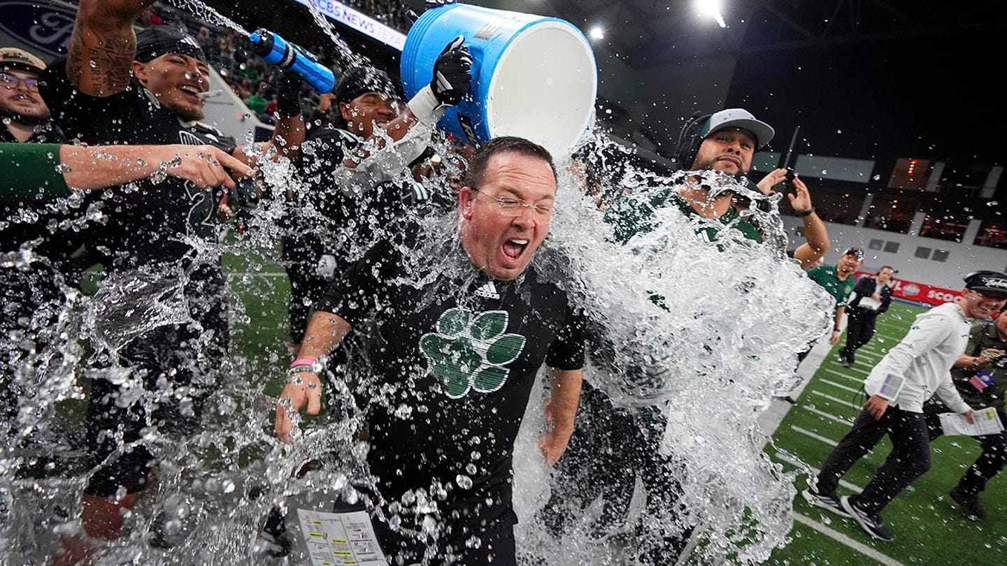 Ohio interim head coach John Hauser is out after winning the Frisco Bowl against UNLV in Frisco, Texas on Dec. 23, 2025. (LM Otero/AP photo)