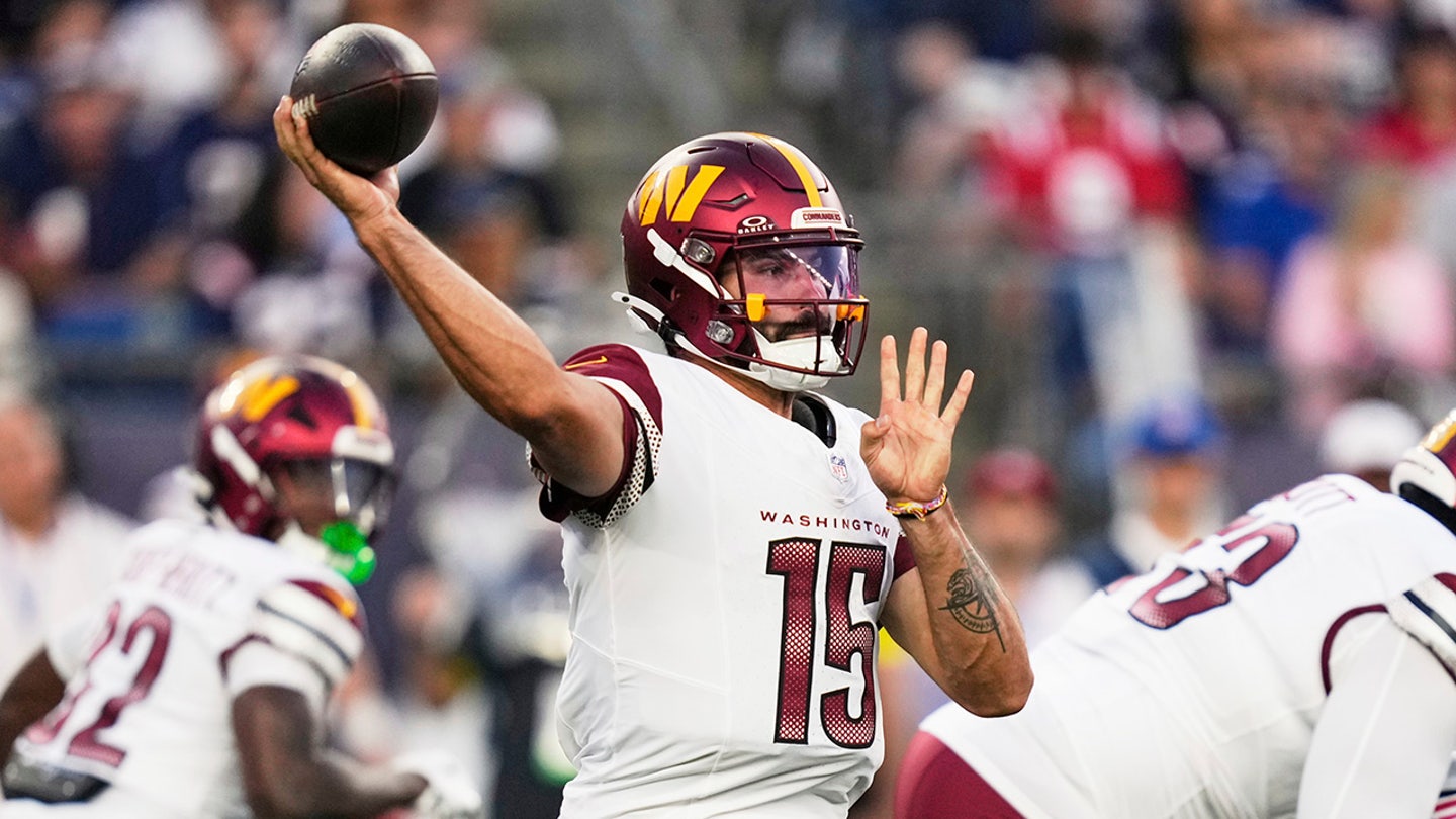 Washington commanders Quarterback Sam Hartman, No. 15, throw during the first half of a NFL football match in the NFL against New England Patriots on Friday 8 August 8, 2025 in Foxborough, Massachusetts. (AP Photo/Charles Krupa)