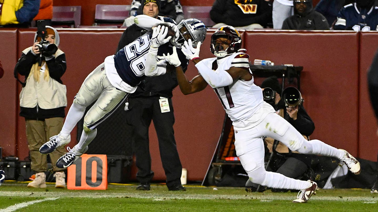 Dallas Cowboys Cornerback Daron Bland (26) captures a passport intended for Washington Commander’s wide receiver Terry McLaurin (17) during the second half of FedExfield on January 7, 2024. (Brad Mills/USA Today Sports)