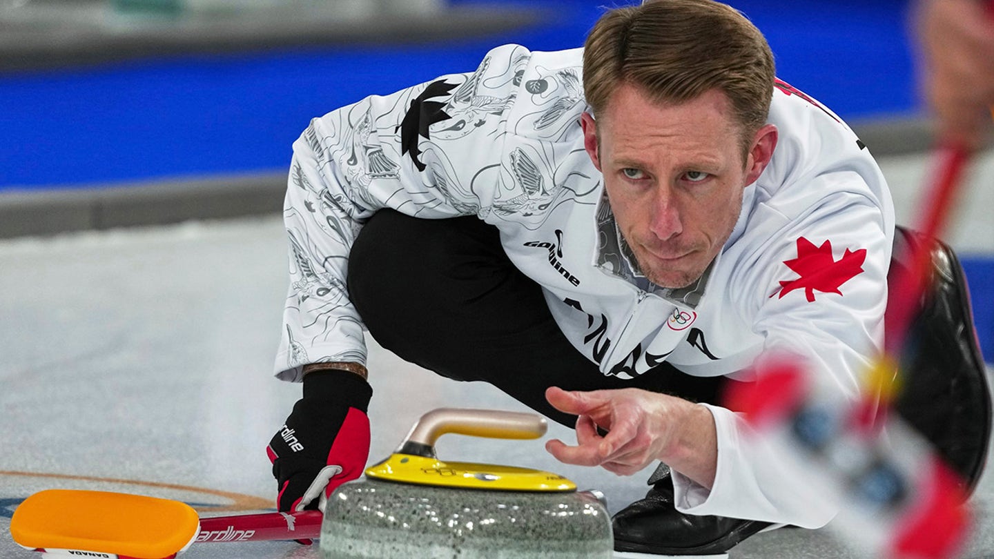 Canada’s Marc Kennedy in action during the men’s curling round robin session against China, at the 2026 Winter Olympics, in Cortina d’Ampezzo, Italy, Sunday, Feb. 15, 2026. (AP Photo/Misper Apawu)
