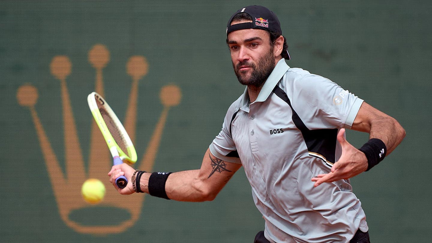 Matteo Berrettini of Italy hits a forehand during his round of 32 match against Daniil Medvedev at the Rolex Monte-Carlo Masters in Monte-Carlo, Monaco, on April 8, 2026. (Mateo Villalba/Getty Images)