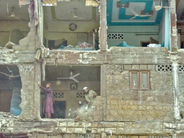 Teams from Sindh Building Control Authority (SBCA) have begun to tear down fallen buildings identified as dangerous. According to building inspector Zulfiqar Shah, two buildings are currently being demolished in phases after evacuation, while a study is underway for a third structure.