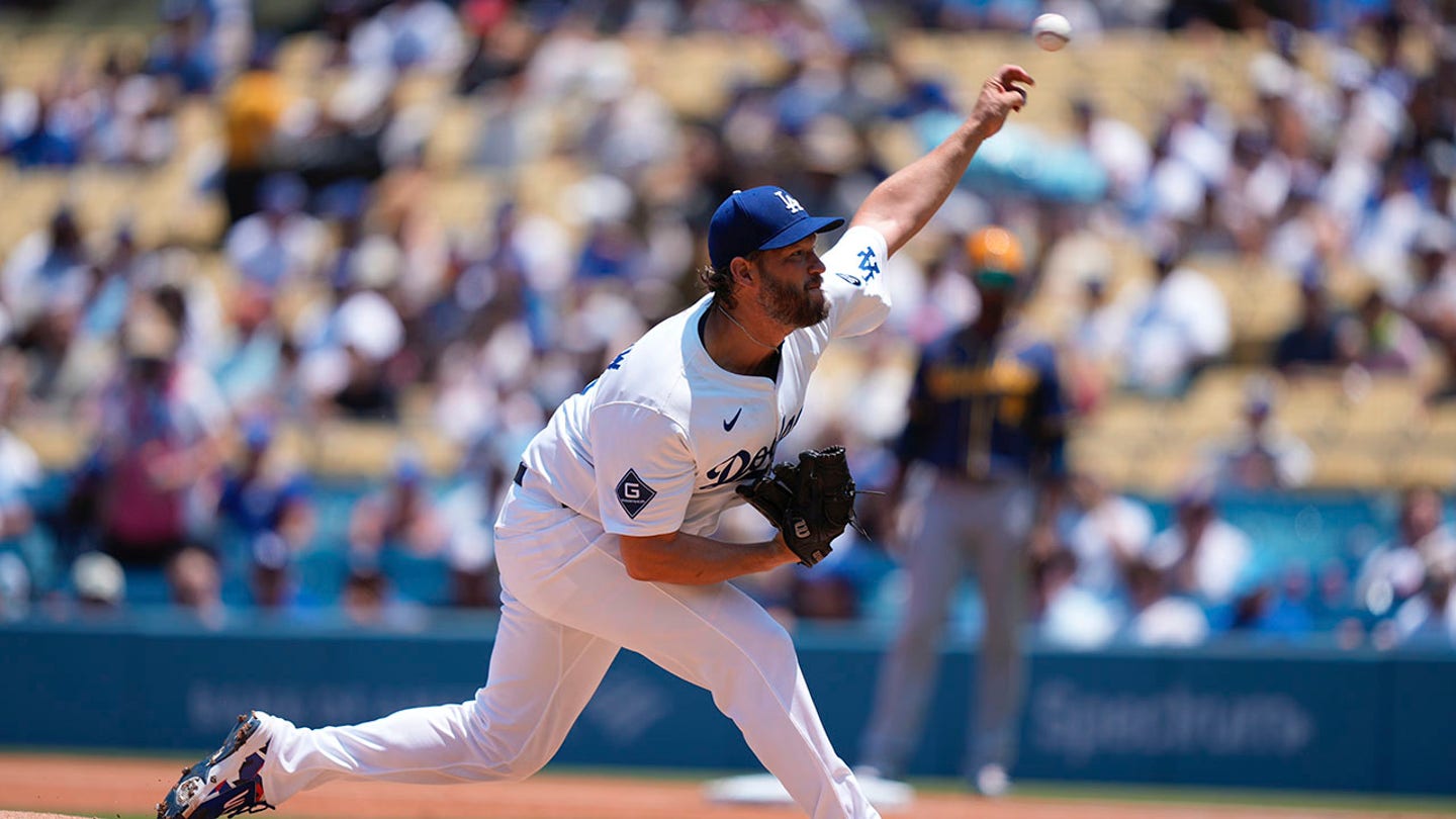 Los Angeles Dodgers Start Pitcher Clayton Kershaw throws to the record during the first lap of a baseball match against Milwaukee Brewers, Sunday, July 20, 2025, in Los Angeles. (Mark J. Terrill/AP Photo)