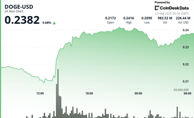 • The sharpest move came at. 14:00 GMT on August 22, when DOGE spiked from $ 0.21 to $ 0.23 on 4.27B -Volume, almost quadrupled the hourly average.