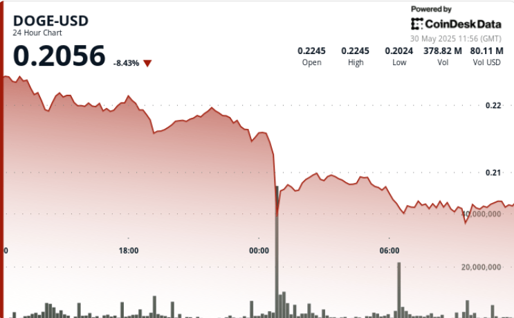 The droplet – from $ 0.226 to $ 0.202 – occurred around midnight, coinciding with an increase in trade volume to 1.18 billion, highlighting a crib among the traders who responded to wider marketing.