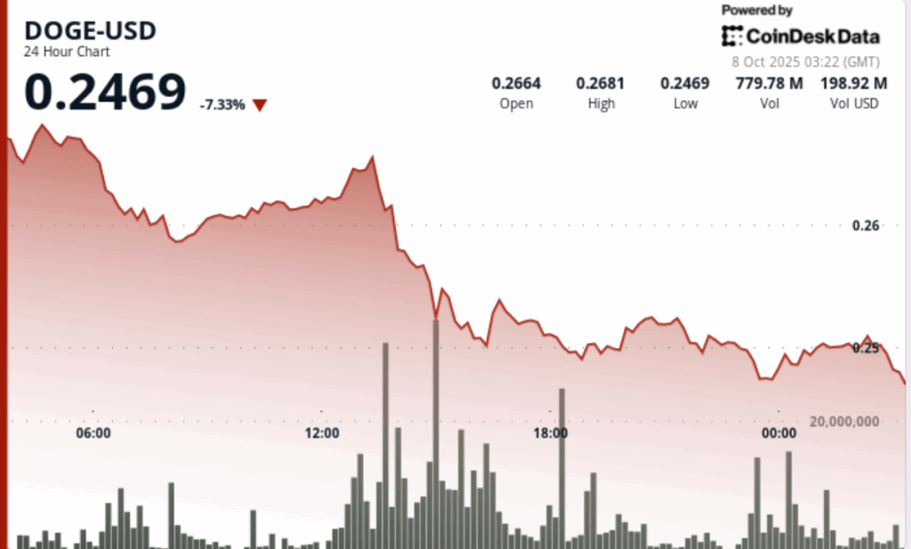Dogecoin fell 8% in Tuesday’s trade when whales were unloaded to $ 0.27 resistance before turning back in nearly $ 0.25. A billion-token token liquidation wave marked the low-day’s low but prints in late session showed that smart money is stepping back and hinting at a possible base.