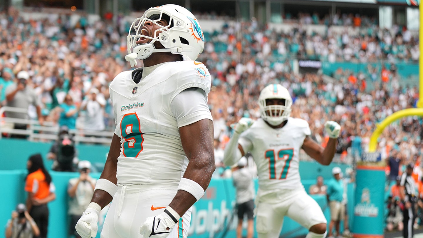 Dolphins run back Raheem Mostert after the match against Jacksonville Jaguars at Hard Rock Stadium in Miami Gardens, Florida, September 8, 2024. (SAM NAVARRO-MAILED PICTURES)