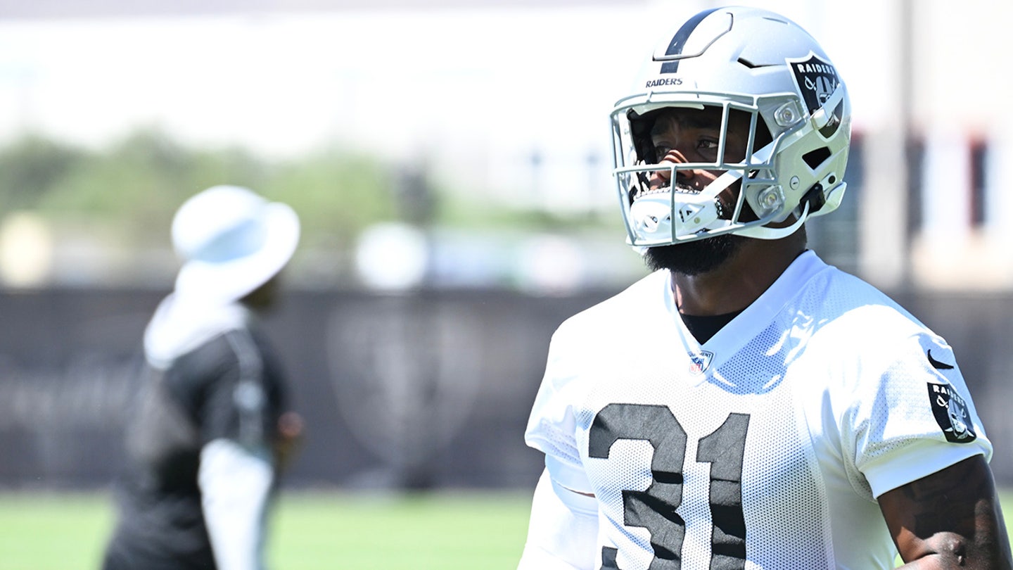 Las Vegas Raiders, who runs back Raheem Mostert, is preparing for an exercise during MiniCamp at Intermountain Health Performance Center in Henderson, Nevada, June 10, 2025. (Candice Ward-Preferred Pictures)