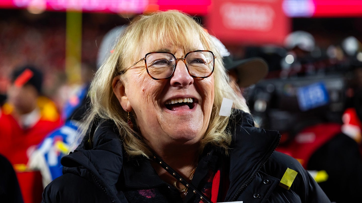 Donna Kelce celebrates after the AFC championship against Buffalo Bills at Geha Field at Arrowhead Stadium on January 26, 2025. (Mark J. Revilas-prescribed images)