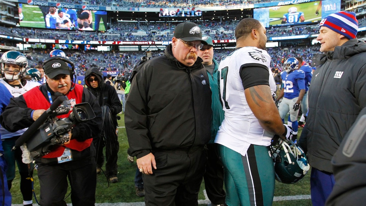 Main coach Andy Reid from Philadelphia Eagles leaves the field after a game against New York Giants 30 December 2012 at Metlife Stadium in East Rutherford, NJ (Hunter Martin/Philadelphia Eagles/Getty Images)