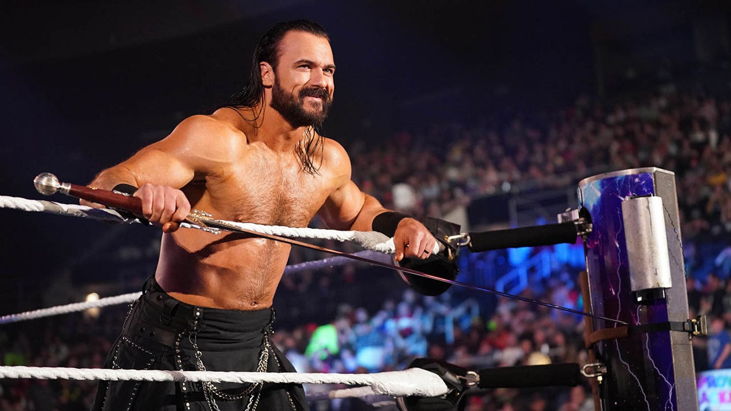 Drew McIntyre drives to the ring during Smackdown in the Dickies Arena April 25, 2025, in Fort Worth, Texas. (Heather McLaughlin/WWE via Getty Images)