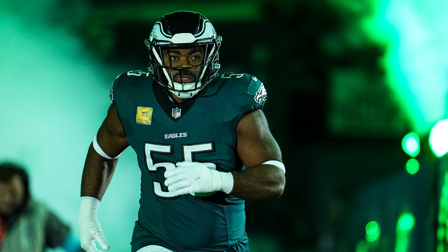 Brandon Graham from Eagles runs out of the tunnel before the Washington Commanders game at Lincoln Financial Field on November 14, 2024 in Philadelphia. (Cooper Neill/Getty Images)