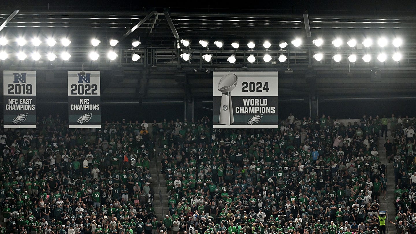 The Philadelphia Eagles’ Super Bowl Championship banner is revealed prior to the game between Philadelphia Eagles and Dallas Cowboys at Lincoln Financial Field. (Eric Hartline/Imag- Pictures)