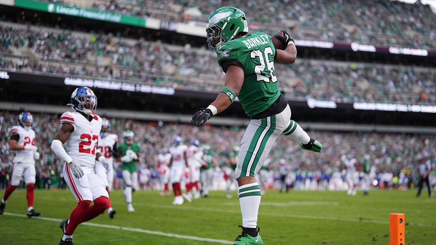 Two plays later, Hurts threw the ball to Saquon Barkley for a touchdown that helped Philadelphia go up 14–7. It was Barkley’s second touchdown of the game.