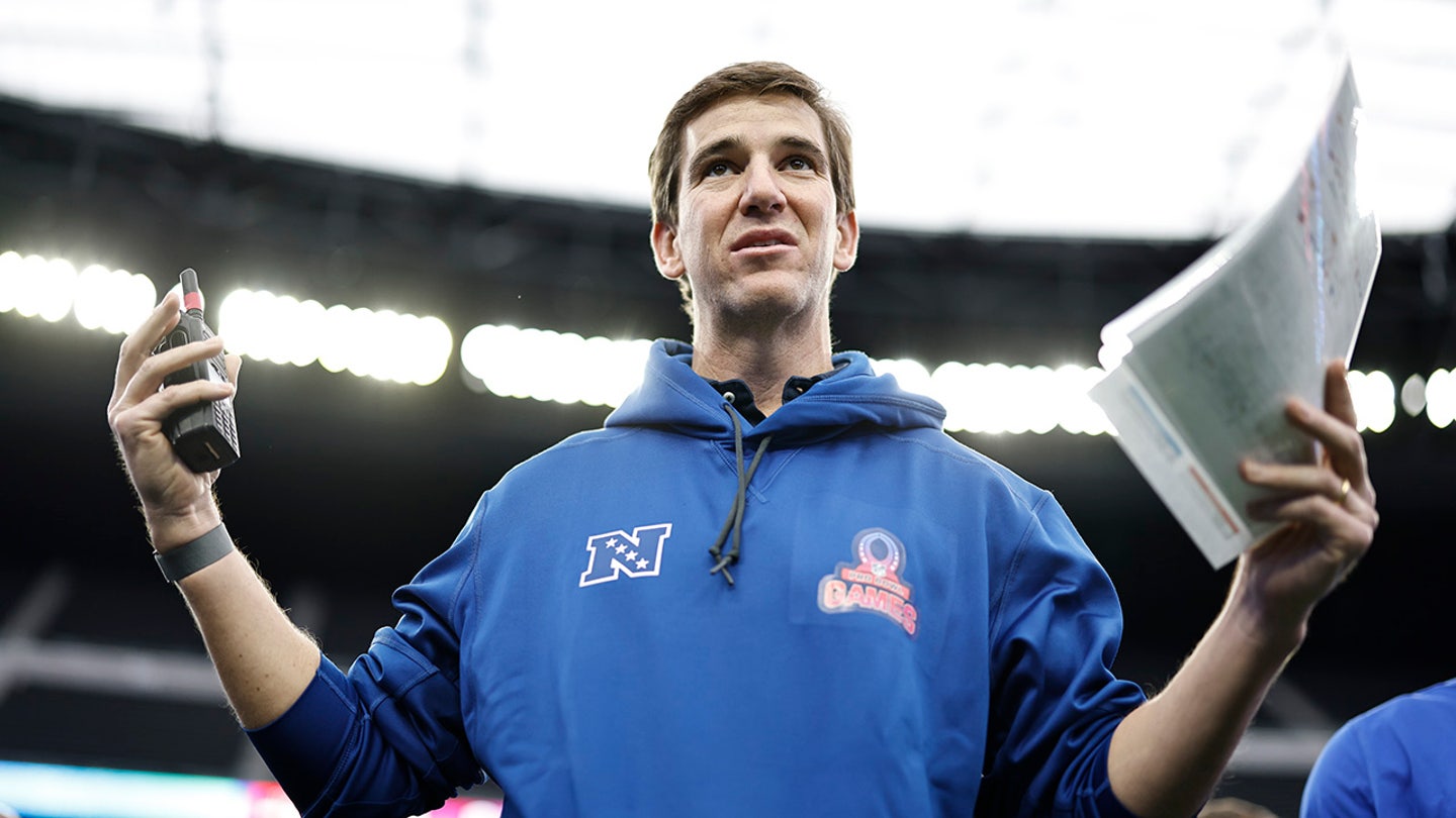 NFC head coach Eli Manning runs during a practice session before the NFL Pro Bowl at Allegiant Stadium in Las Vegas, Nev., on Feb. 4, 2023. (Michael Owens/Getty Images)